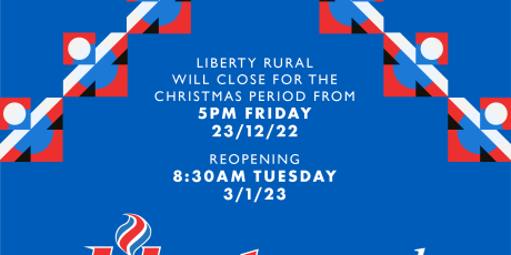 Liberty Rural will close for the Christmas period. Fuel deliveries will continue during this time.Read More